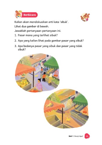 2. Apa yang kalian lihat pada gambar pasar yang sibuk?