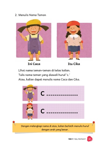 Dengan melengkapi nama di atas, kalian berlatih menulis huruf