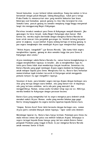 putar di angkasa, ia pun melihat Arjuna sedang bertapa di lereng gunung. Ia