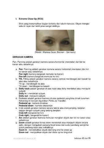 e. Crab adalah gerakan kamera secara lateral atau menyamping, berjalan