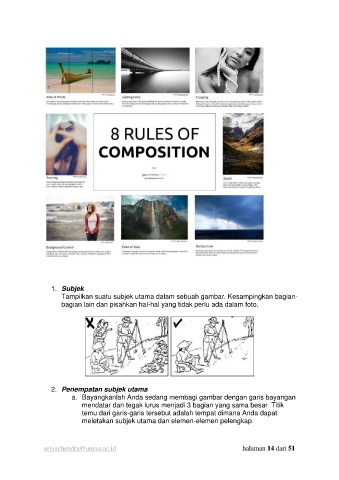 meletakan subjek utama dan elemen-elemen pelengkap.