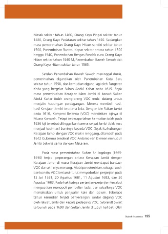 1480, Orang Kayo Pedataran sekitar tahun 1490. Sedangkan