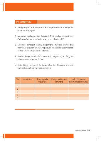 5. Coba kamu inventarisir berbagai situs dan tinggalan manusia