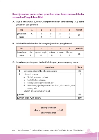 Kunci jawaban pada setiap pelatihan atau tes/asesmen di buku