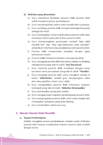 e) Guru mempersiapkan pertanyaan semisal “Apa salat