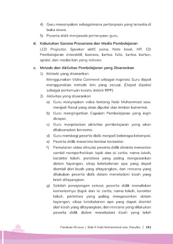 e. Metode dan Aktivitas Pembelajaran yang Disarankan