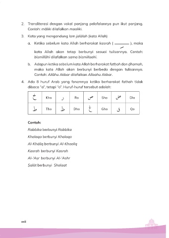 2. Transliterasi dengan vokal panjang pelafalannya pun ikut panjang.