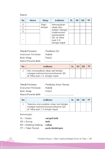 No      Nama         Sikap       Indikator      SL   SR    KD    TP