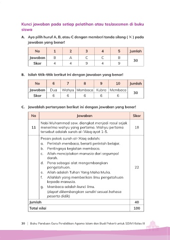 Kunci jawaban pada setiap pelatihan atau tes/asesmen di buku