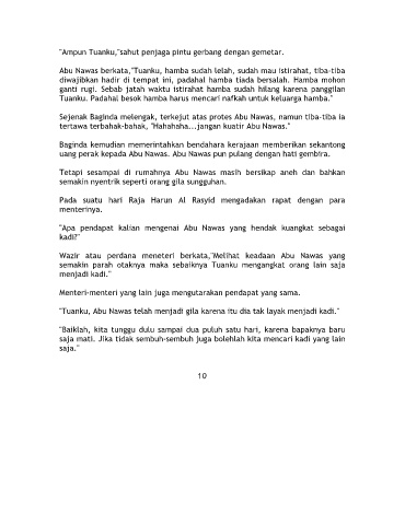 "Tuanku, Abu Nawas telah menjadi gila karena itu dia tak layak menjadi kadi."