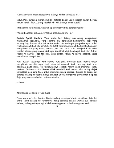perkara. Walaupun Abu Nawas tidak menjadi Kadi namun dia sering diajak