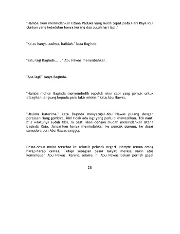 "Usulmu kuterima." kata Baginda menyetujui.Abu Nawas pulang dengan