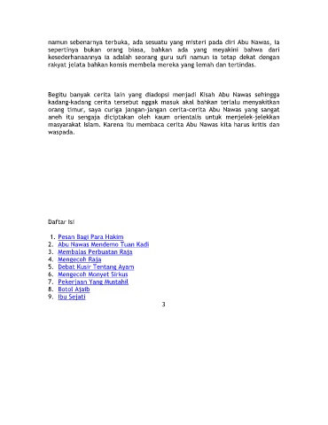 masyarakat Islam. Karena itu membaca cerita Abu Nawas kita harus kritis dan