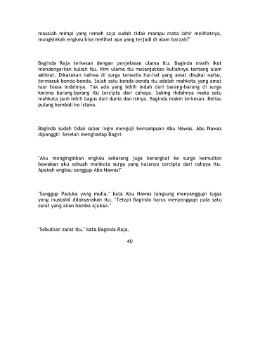 yang mustahil dilaksanakan itu. "Tetapi Baginda harus menyanggupi pula satu