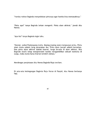 "Pintu apa?" tanya Baginda belum mengerti. Pintu alam akhirat." jawab Abu