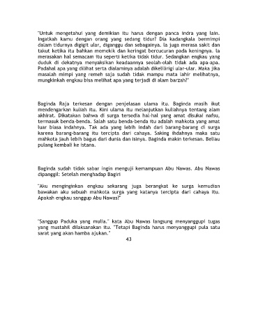 "Sanggup Paduka yang mulia." kata Abu Nawas langsung menyanggupi tugas