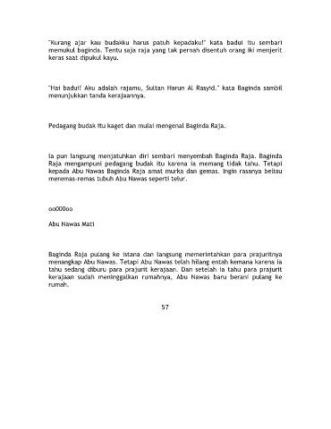 kepada Abu Nawas Baginda Raja amat murka dan gemas. Ingin rasanya beliau