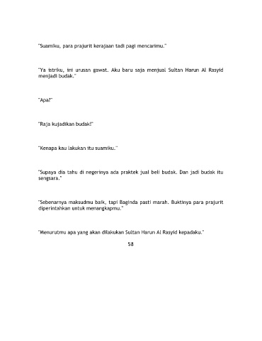 "Ya istriku, ini urusan gawat. Aku baru saja menjual Sultan Harun Al Rasyid
