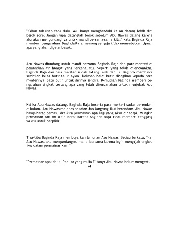 di kolam. Abu Nawas melepas pakaian dan langsung ikut berendam. Abu Nawas