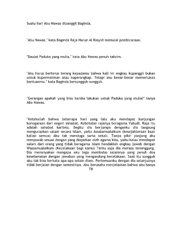 "Abu Nawas." kata Baginda Raja Harun Al Rasyid memulai pembicaraan.