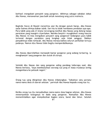 penyakitnya tidak terlacak. Abu Nawas merasa bahwa seluruh perhatian tertuju