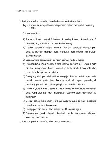 f.  Latihan gerakan passing bawah dengan variasi gerakan.