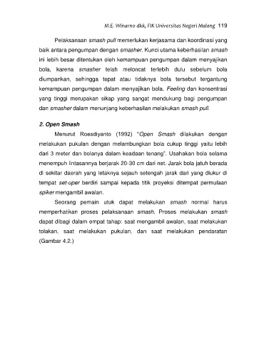 Menurut Roesdiyanto (1992) “Open Smash dilakukan dengan