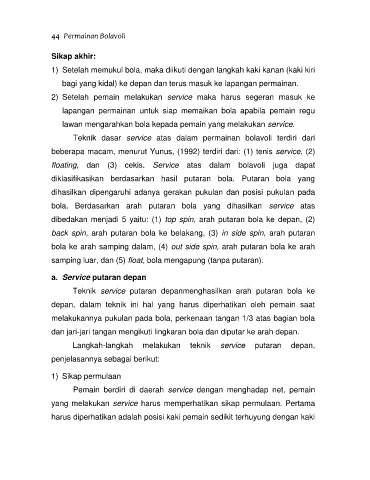 floating, dan (3) cekis. Service atas dalam bolavoli juga dapat