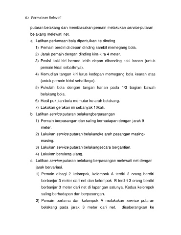 putaran belakang dan membiasakan pemain melakukan service putaran