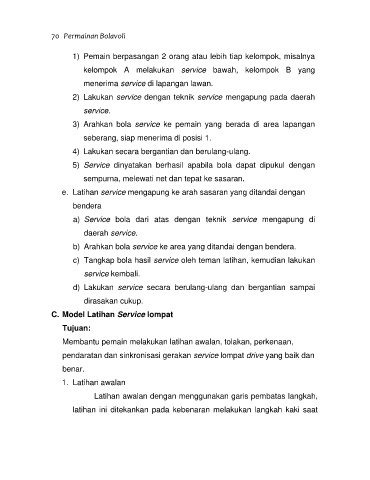 e. Latihan service mengapung ke arah sasaran yang ditandai dengan
