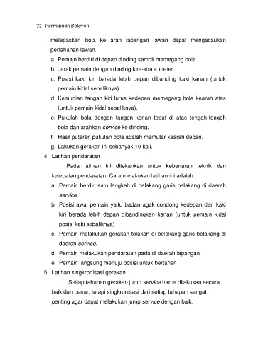 a. Pemain berdiri satu langkah di belakang garis belakang di daerah