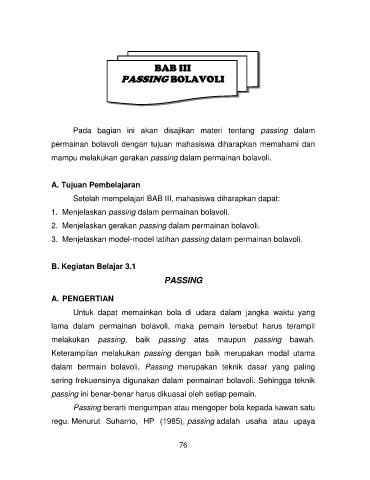Pada bagian ini akan disajikan materi tentang passing dalam