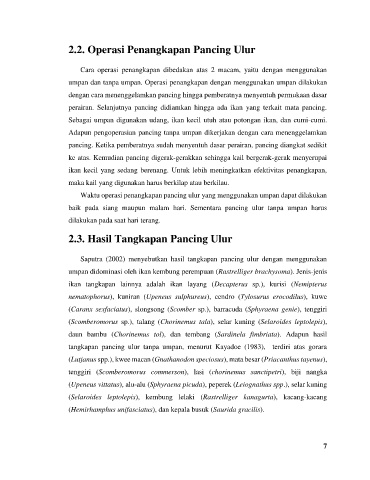 Saputra (2002) menyebutkan hasil tangkapan pancing ulur dengan menggunakan