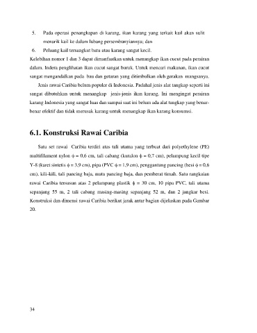 Konstruksi dan dimensi rawai Caribia berikut jarak antar bagian dijelaskan pada Gambar