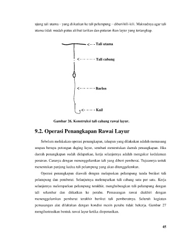 pelampung dan pemberat. Selanjutnya melemparkan tali cabang satu per satu. Kerja