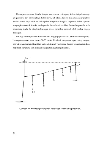 tali pemberat dan pemberatnya. Selanjutnya, tali utama berikut tali cabang diangkat ke