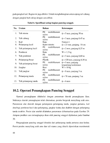 Tabel 6. Spesifikasi setiap bagian pancing senggol.