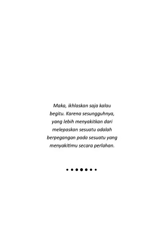 Maka, ikhlaskan saja kalau begitu. Karena sesungguhnya, yang lebih menyakitkan dari melepaskan sesuatu adalah berpegangan pada sesuatu yang menyakitimu secara perlahan.