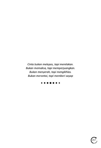 Cinta bukan melepas, tapi merelakan. Bukan memaksa, tapi memperjuangkan. Bukan menyerah, tapi mengikhlas. Bukan merantai, tapi memberi sayap