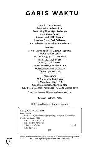 Garis Waktu/Fiersa Besari: penyunting, Juliagar R. N.:—cet.1—