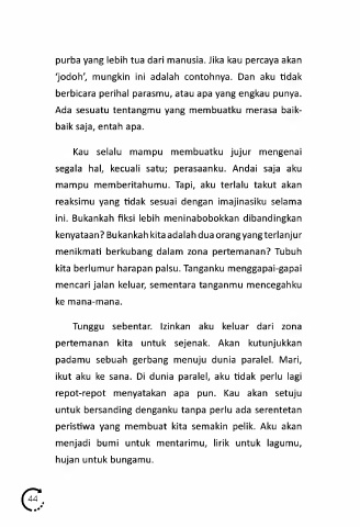ikut aku ke sana. Di dunia paralel, aku tidak perlu lagi