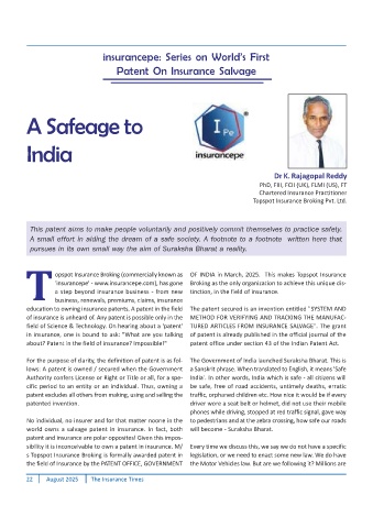 world owns a salvage patent in insurance. In fact, both will become - Suraksha Bharat.