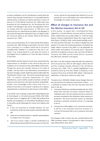 Insurance Act, 1963 relating to warranties, the Court noted practice .This raises the interesting question of whether the