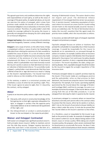 To the contrary, a waiver is a contractual provision and detriment, the insured can estop the insurer from breaking