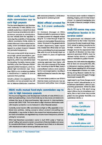 IRDAI mulls mutual fund- with consumer protection, while ensur- the accused under sections related to