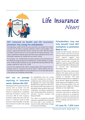 and Services Tax (GST), providing significant relief to policyholders. The likely to rise