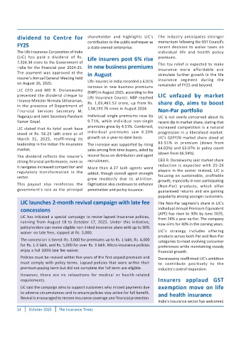 LIC has initiated a special campaign to revive lapsed insurance policies, from 24% a year earlier. The company