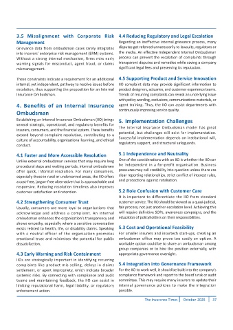 into insurers' enterprise risk management (ERM) systems.  the media. An effective Independent Internal Ombudsman