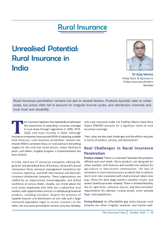 Rural insurance penetration remains low due to several factors. Products typically cater to urban