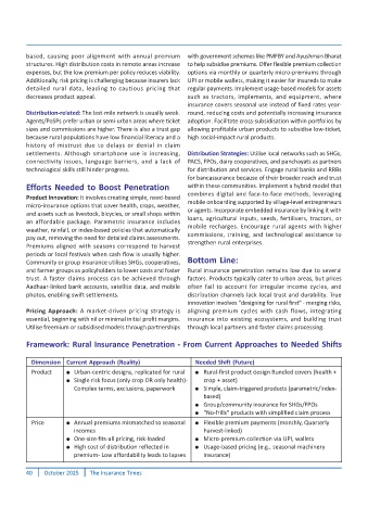 and farmer groups as policyholders to lower costs and foster  Rural insurance penetration remains low due to several
